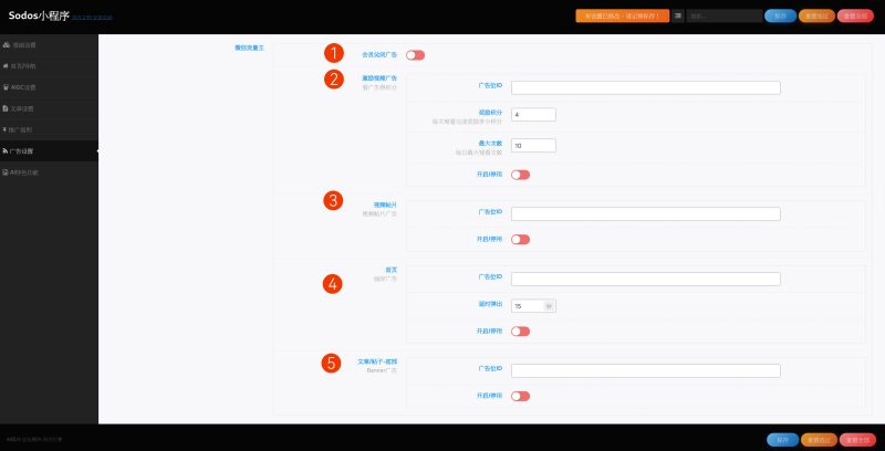 如果小程序已开通流量主,可在此设置广告位赚取广告佣金。